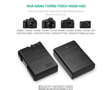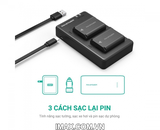 - Thêm năng lượng cho máy ảnh với 2 pin dự phòng cùng một bộ sạc pin kép để sạc cùng lúc 2 cục pin.