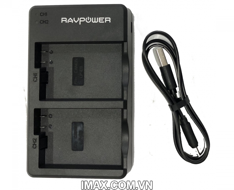 Không như các loại sạc thông thường chỉ có một tùy chọn sạc cho pin Canon, bộ sạc RAVPower có đến 3 tùy chọn: sạc tượng, sạc xe hơi và sạc dự phòng (bán lẻ), để tăng tính tiện dụng; chỉ mất khoảng 2 giờ để sạc đầy một pin và3 giờ để sạc đầy hai pin cùng lúc qua cổng Micro-USB 5V, đầu vào 2.1A.