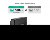 - Nhiều năng lượng hơn, nhiều ảnh hơn: Chụp lâu hơn với mỗi pin 1000mAh cung cấp 620 lần chụp