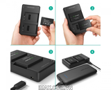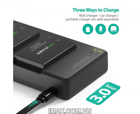 Đa tùy chọn: sạc tường USB, sạc xe hơi, sạc dự phòng; có thể sạc trên máy ảnh hoặc sạc qua cổng sạc2Ađể tăng độ tối ưu với thời gian sạc chỉ mất khoảng 3 giờ để sạc đầy hai pin cùng lúc.