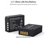 - Không bao giờ bỏ lỡ ảnh: Mở rộng đáng kể ảnh chụp của bạn với tối đa 600 ảnh cho mỗi pin riêng lẻ và hai pin thay thế đi kèm