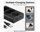 - Đầu vào: 5V/2.1A, thiết kế hai khe cắm, có thể sạc cùng lúc hai pin