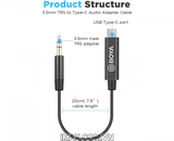 BOYA BY-K2 là cáp chuyển đổi với jack 3,5mm TRRS sang Male Type-C,BOYA BY-K2có thiết kế nhỏ gọn, dễ dàng sử dụng, cáp có chiều dài 20cm, giao diện kết nối anh Jack .3.5mm cho âm thanh trung thực.