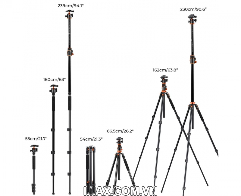 - Kích thước siêu cao: chiều cao tối đa của sản phẩm có thể được sử dụng lên tới 2,3 mét, để bạn nổi bật trong khung cảnh; Thiết kế ống chân 4 đoạn, kích thước đóng 54cm, trọng lượng tịnh 2kg