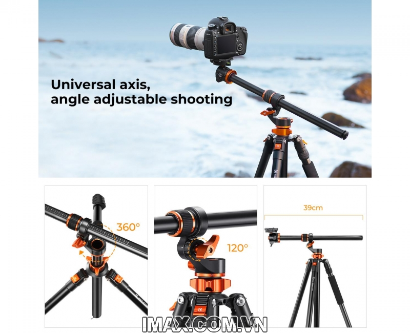 - Thiết kế ống chân 4 đoạn, kích thước đóng 54cm, trọng lượng tịnh 2kg