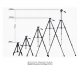 Chân máy có chiều cao tối đa là 150cm và chiều cao gấp gọn là 46cm, cung cấp rất nhiều tính năng linh hoạt.