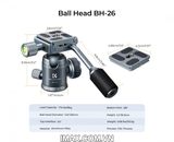 Đầu bi kim loại có tay cầm Xoay 360 độ K&F Concept BH-26 Xám (KF31.049V1)