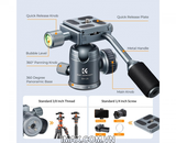 - Đầu bi có lực khóa mạnh, được trang bị thước thủy, có thể giúp máy ảnh ở trạng thái cân bằng một cách dễ dàng.
