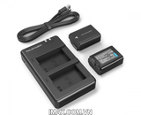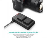 - Thêm năng lượng cho máy ảnh với 2 pin dự phòng cùng một bộ sạc pin kép để sạc cùng lúc 2 cục pin.