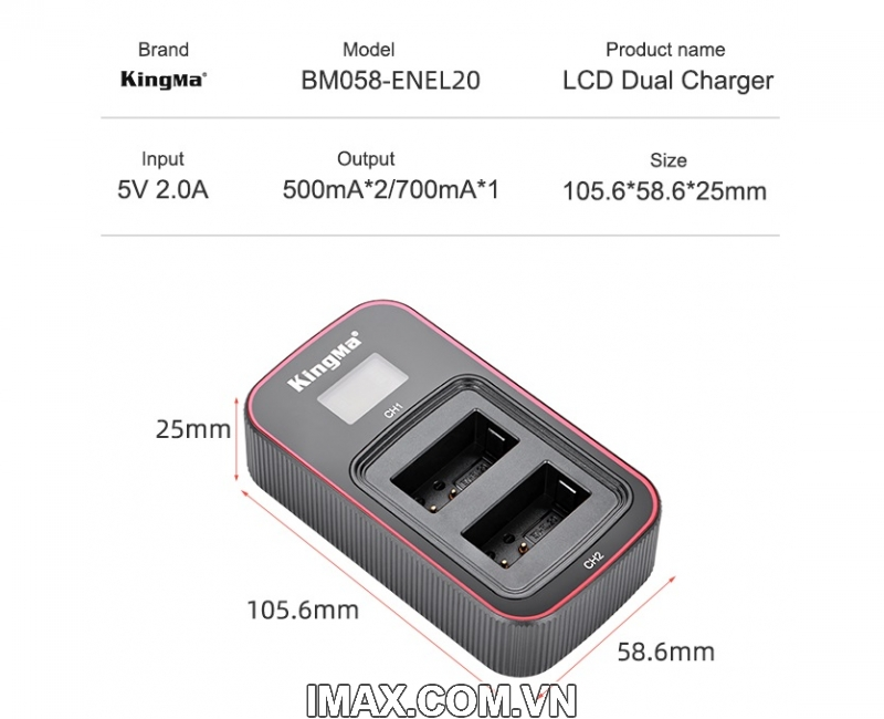 Thông tin kỹ thuật sạc cho pin Kingma EN-EL20: