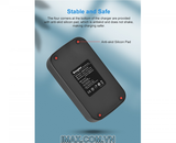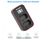 Dễ dàng nhận thấy bộ sạc này có 2 slot cho phép bạn sạc cùng lúc 2 viên pin, giúp bạn tiết kiệm đáng kể thời gian. Thay vì phải sạc và chờ từng viên một, giờ đây bạn có thể tận dụng và nạp năng lượng cho 2 viên pin, tức là thời gian đã được tiết kiệm đi một nửa.
