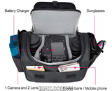 - Phù hợp với 1 máy ảnh + 2 ống kính + điện thoại di động + kính lọc + phụ